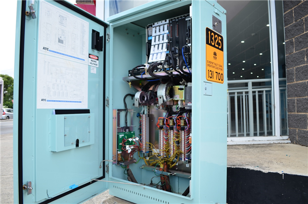 The ATSC4 ELV Traffic Signal Controller with Dim-By-Wire Capability installed in Granville